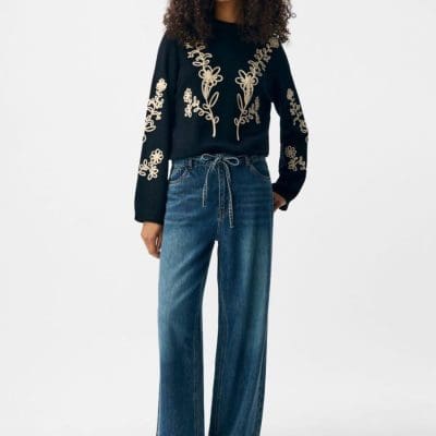 Pour accompagner cette pièce forte, le jean large Objrosie à taille nouée offre un effet mi-haut élégant, soulignant la silhouette tout en conservant un confort optimal. Sa coupe large et fluide équilibre parfaitement la finesse de la chemise, pour un look moderne et harmonieux.