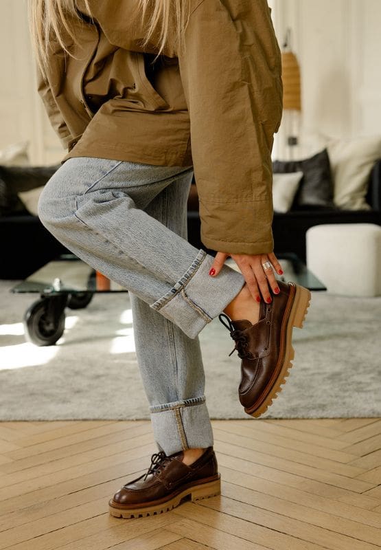 Pour compléter l’ensemble, le mocassin 9050 Bilibi, à semelle épaisse, ajoute une touche d’élégance intemporelle et moderne. Ce look se décline de jour avec des baskets pour un style casual chic, ou en soirée avec des boots pour une allure affirmée et féminine.