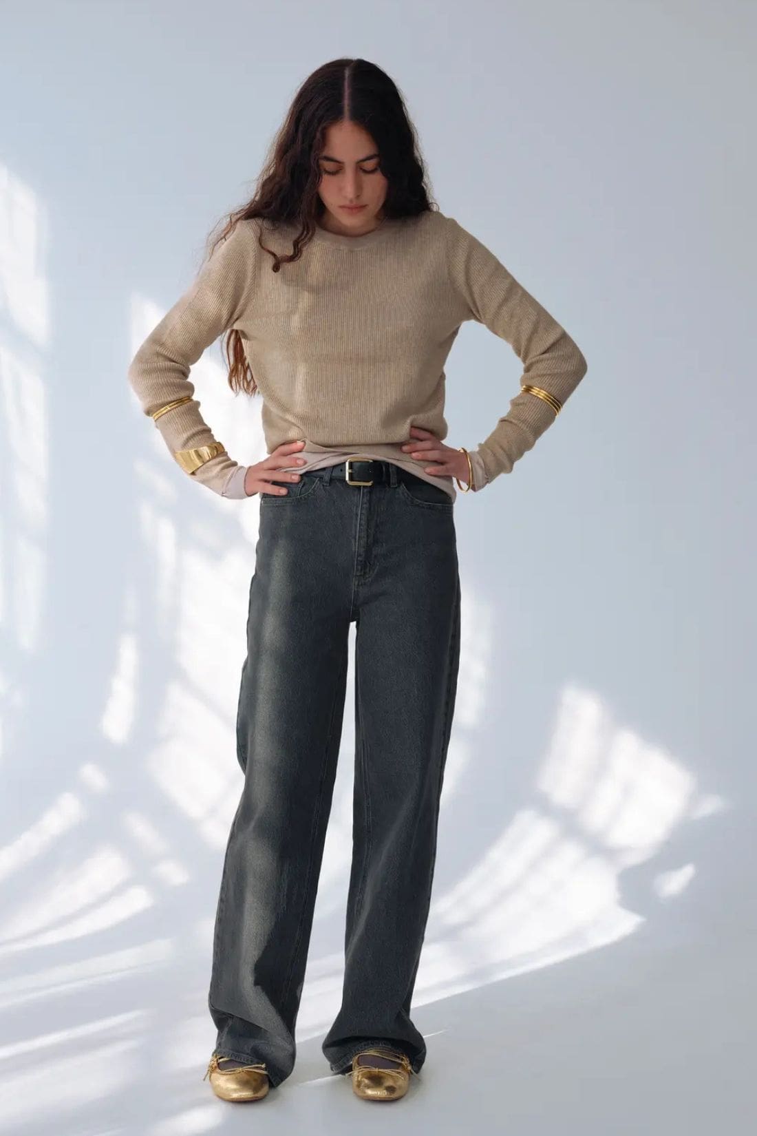 – Jean large à taille nouée